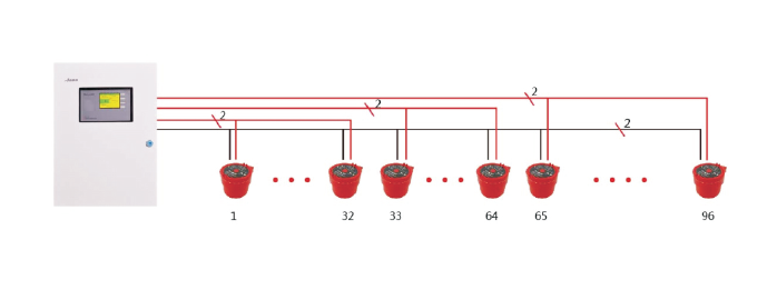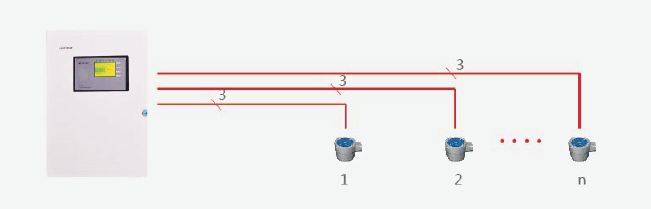 分線制系統(也稱多線制系統)的每個檢測器與控制器之間有獨立的信號回路,所有檢測信號對于控制器是平行輸入的,這種方法又稱為點對點連接。分線制系統信號傳輸可靠,檢測器之間相對獨立,任何一個回路的運行都不受其他回路故障的影響,而且電源配置簡單,沒有嚴格的限制,單分線制系統布線較為復雜,特別在檢測器數量較多或檢測器與控制器間距較遠時,走線繁雜,安裝施工成本高,因此分線制系統適用于檢測器數量少,分布不集中,與控制器距離較近,且安全要求較高的場所。